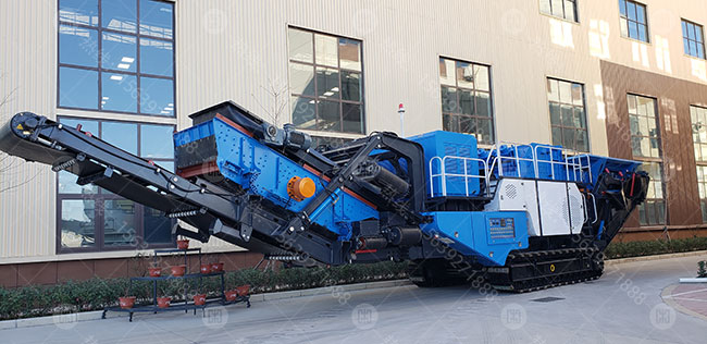 中厚履帶式移動破碎站是根據市場需求,自主研發創新的履帶式車用底盤行走的移動破碎篩分設備。移動破碎站能夠在行進中進行移動,結構緊湊,產能大。是目前礦山中移動為方便的一種設備,因為其有一對履帶,履帶行走,油缸運動使用動力為柴油發電機、主機動力采用市電或外置發動機組供電。